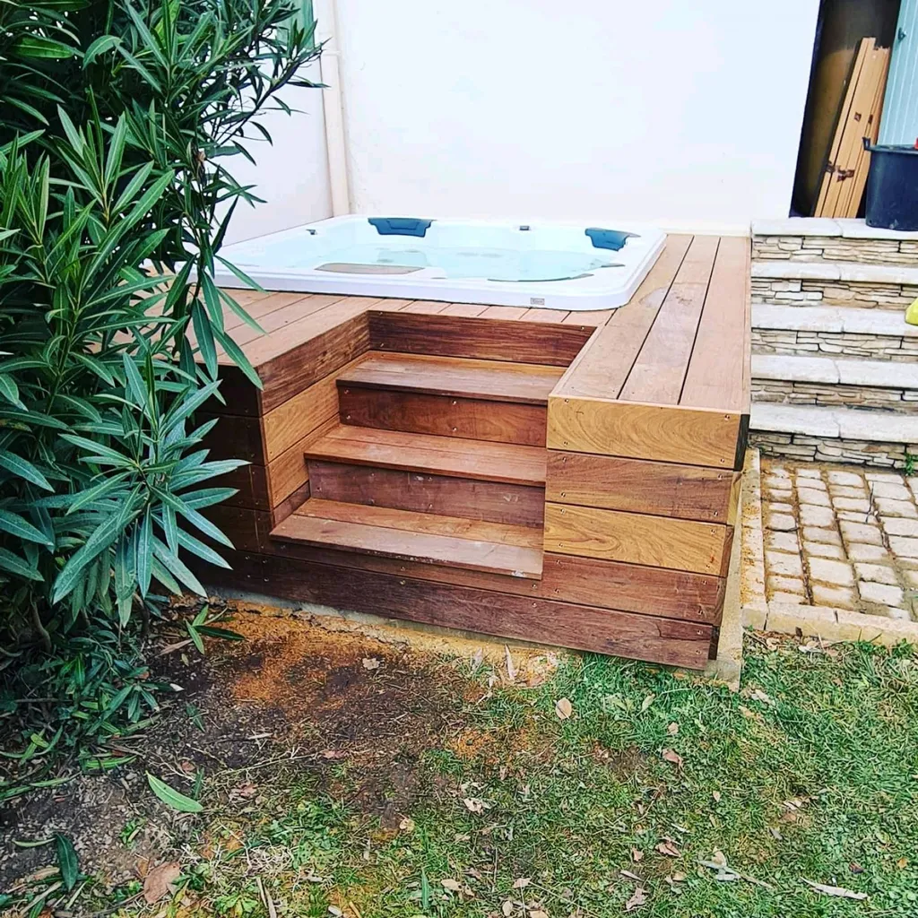 L'utilisation de lambourdes en bois exotiques pour soutenir la structure de la terrasse est également mentionnée. Les lambourdes sont des poutres ou des pièces de bois utilisées pour soutenir les lames de la terrasse et assurer une base solide. L'utilisation de bois exotiques pour les lambourdes est cohérente avec le choix d'utiliser l'IPE comme matériau principal de la terrasse, ce qui assure une harmonie esthétique et une cohérence dans les caractéristiques du bois utilisé.