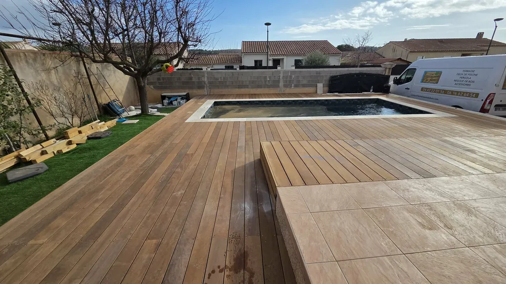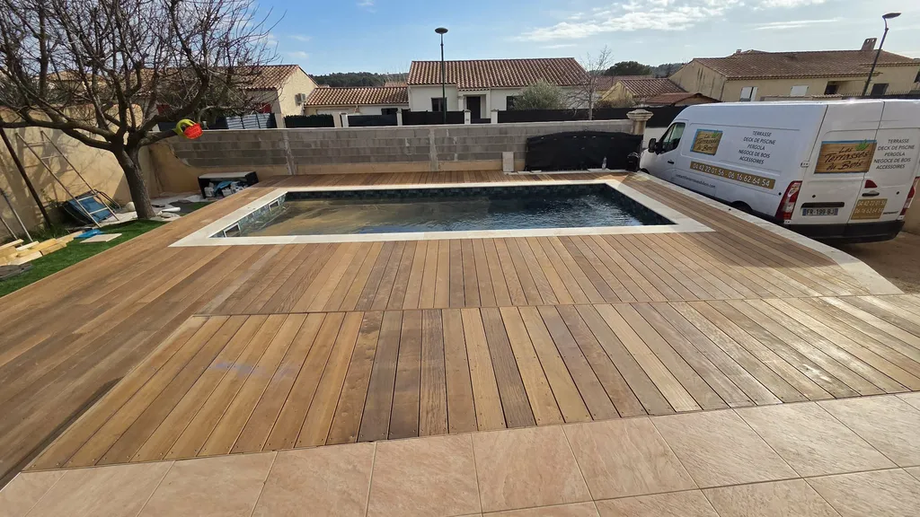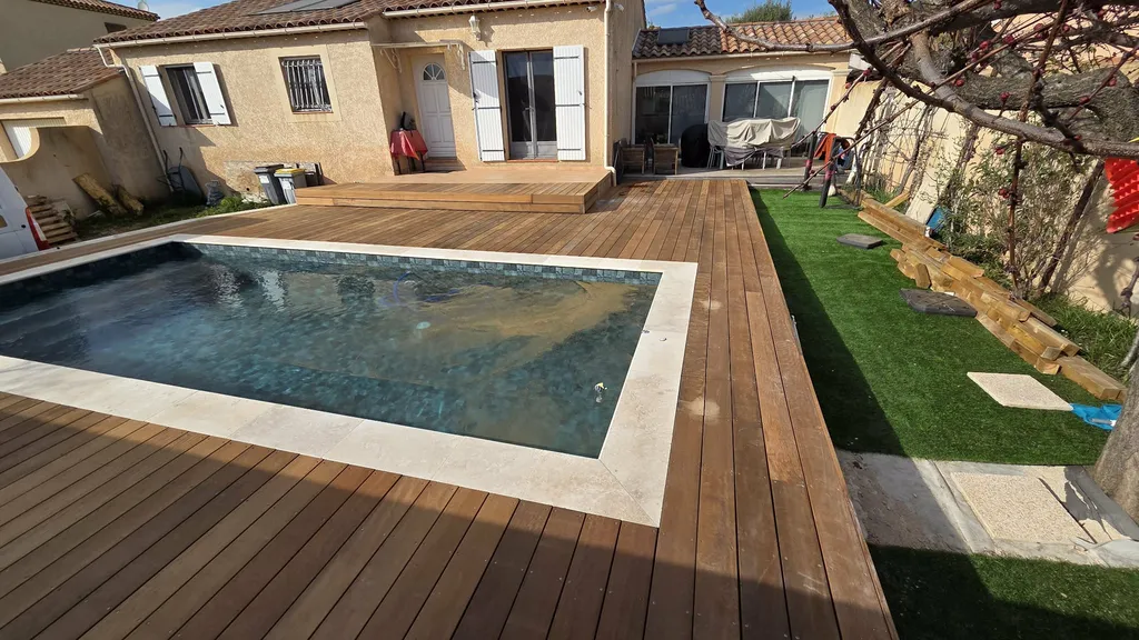 Réalisation d’un tour de piscine en bois exotique Itauba à Lançon-Provence (13)