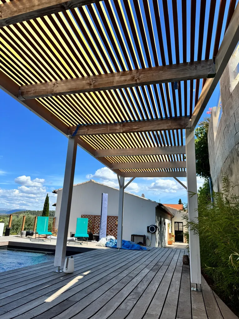 À Cadolive, nous avons terminé un beau projet d’aménagement extérieur avec la création d’une grande pergola sur mesure. Le client voulait un espace ombragé et élégant. Nous avons donc conçu une structure solide et esthétique, capable de durer de longues années.