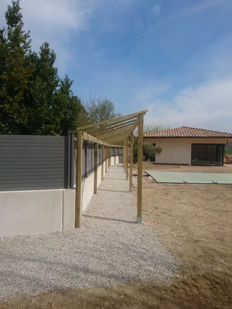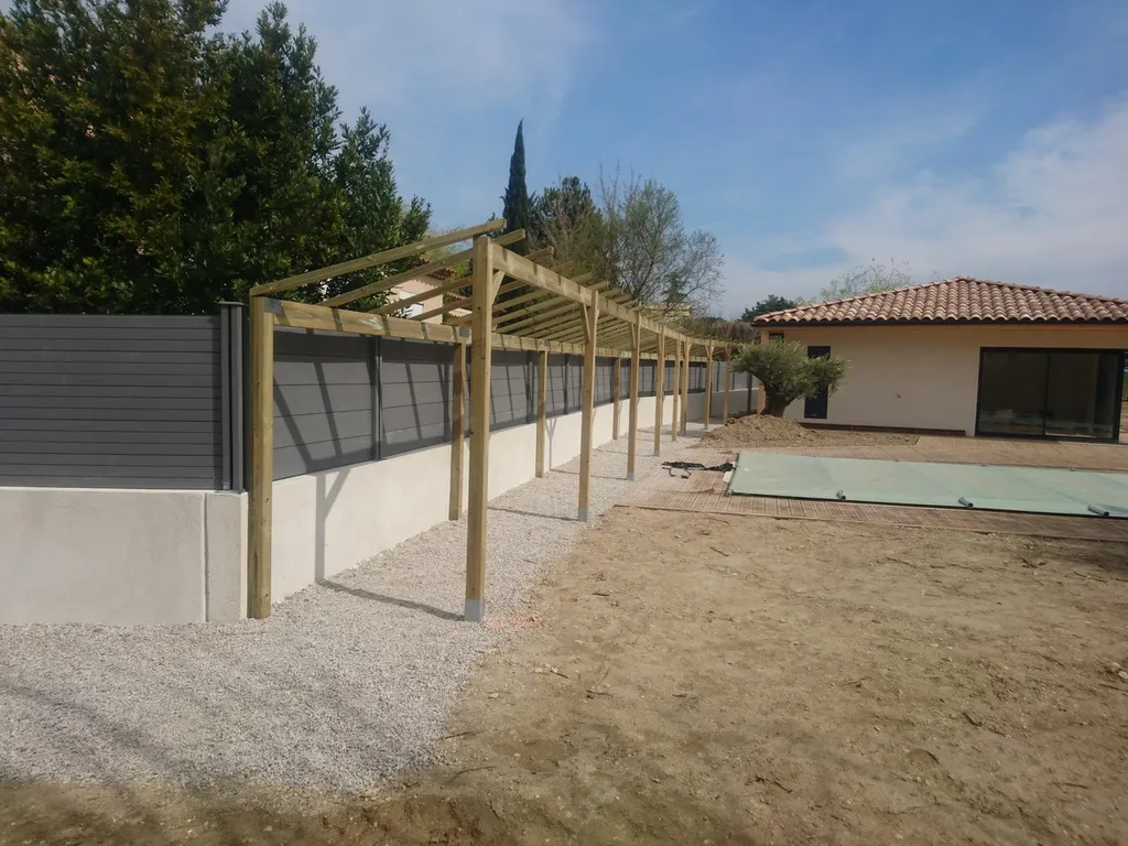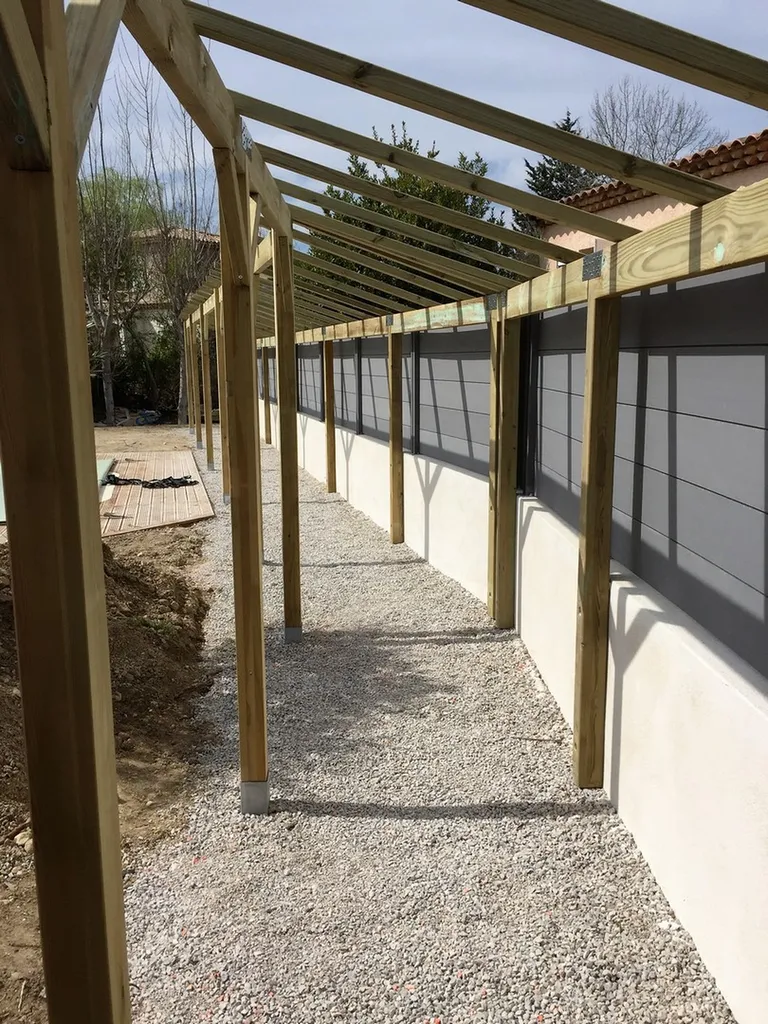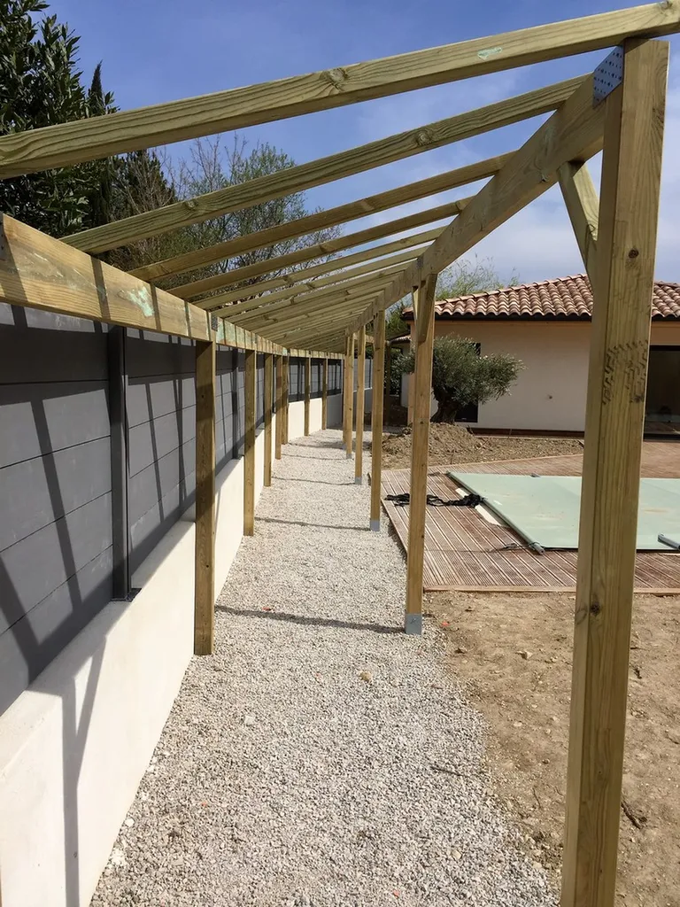 Réalisation d'une pergolas en Pin autoclave à Bouc Bel Air