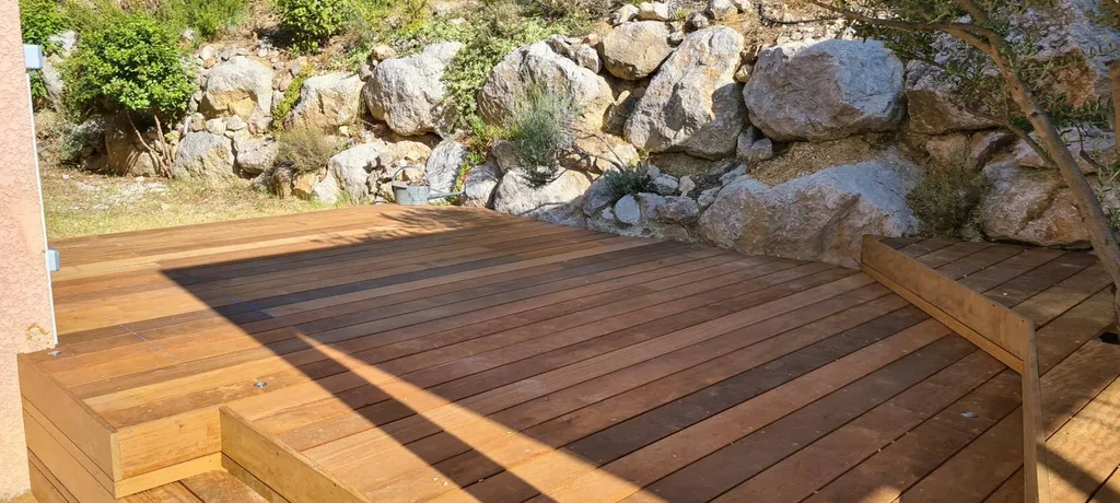 L'Itauba est un bois exotique réputé pour sa stabilité et sa résilience. Il est connu pour s'adapter facilement à différents environnements, ce qui en fait un choix polyvalent pour les aménagements extérieurs tels que les terrasses. De plus, l'Itauba possède des propriétés répulsives aux insectes, ce qui contribue à sa durabilité.