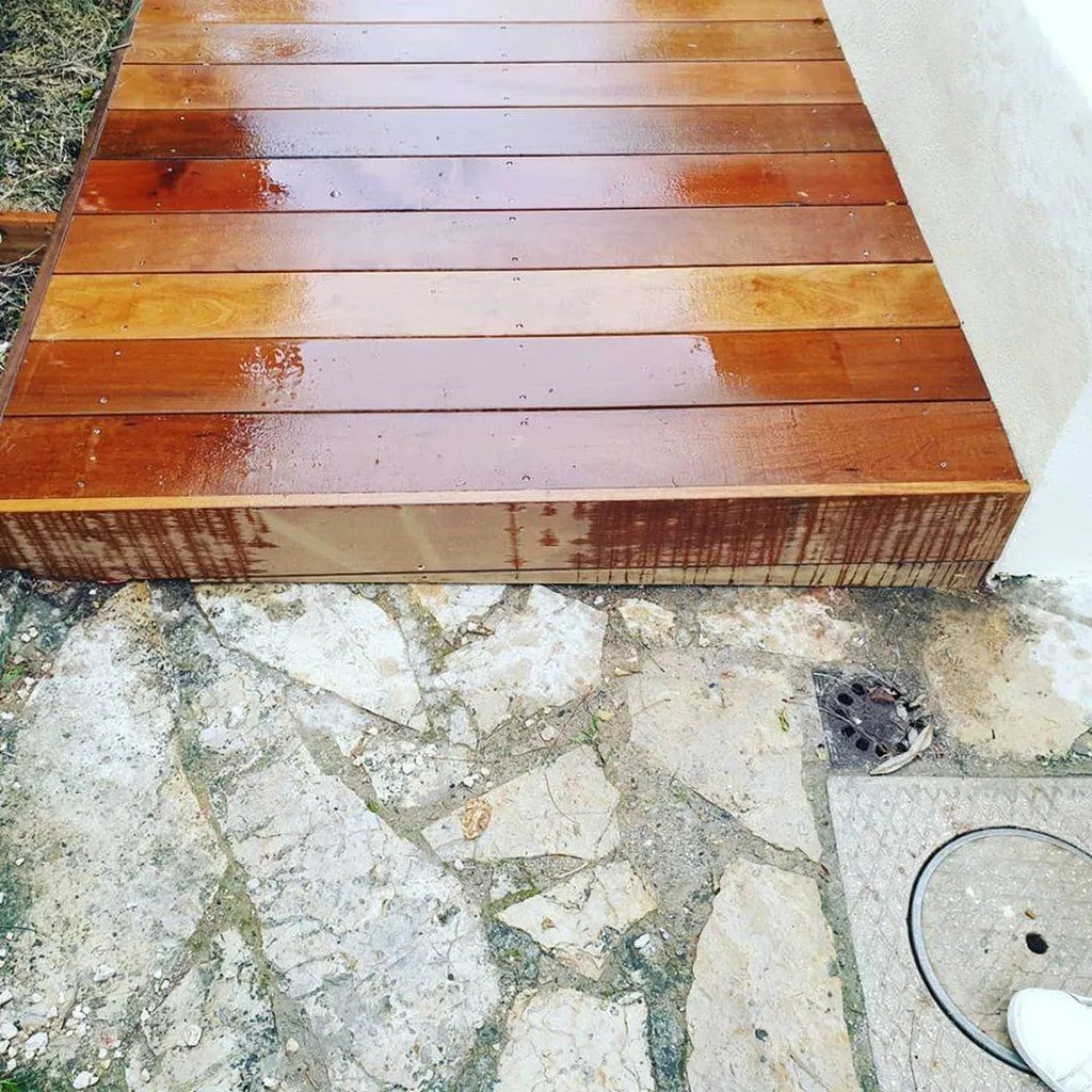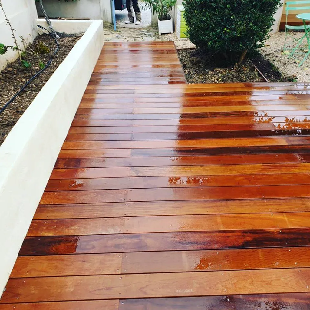 En ce qui concerne l'entretien de l'Itauba, il est relativement simple. Un nettoyage annuel avec un jet basse pression suffit généralement pour le maintenir en bon état. Au fil du temps, comme tous les bois, il commencera à griser naturellement. Si vous souhaitez lui redonner sa couleur d'origine, vous pouvez utiliser un dégriseur. De plus, l'application d'un saturateur permettra de fixer sa teinte et de profiter de son aspect original.