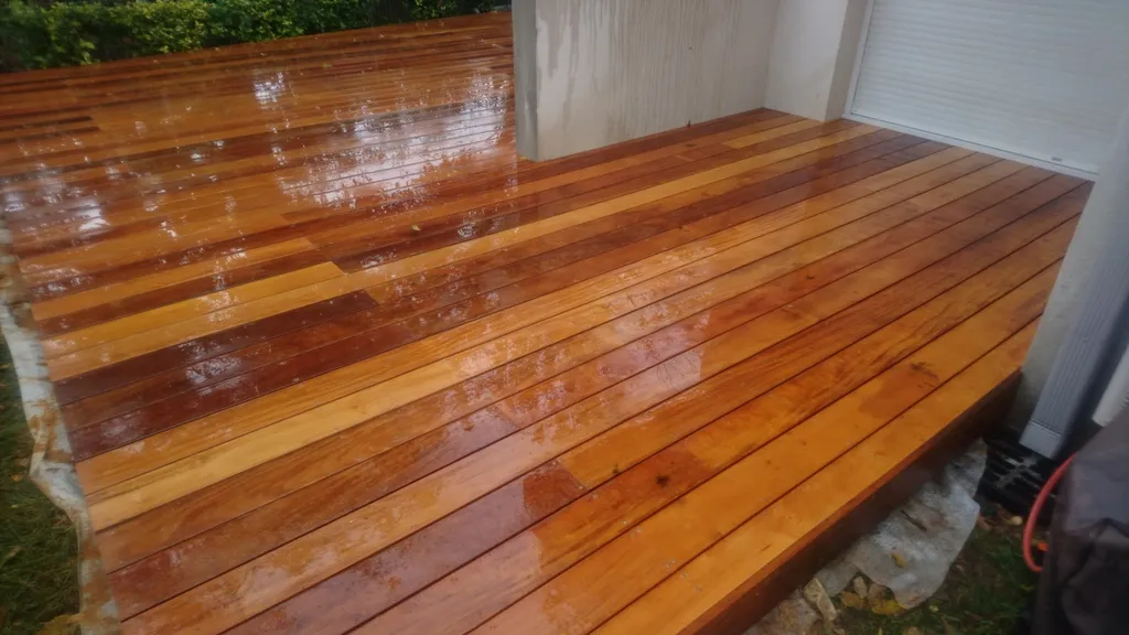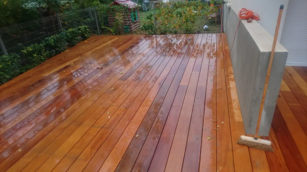 Terrasse bois Garapa à Pertuis sur lambourdes bois exotiques et plots bétons