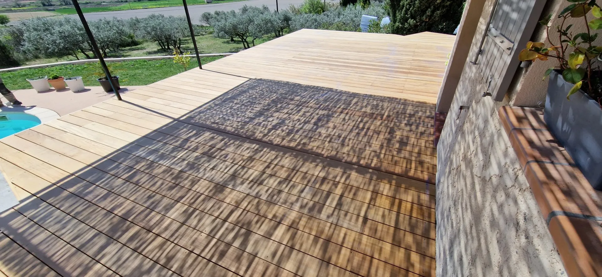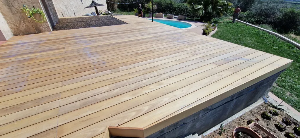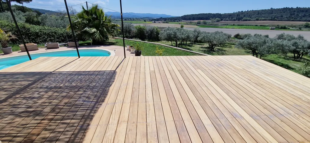 Le Garapa présente une teinte claire, ce qui lui confère un aspect lumineux et chaleureux. Il peut apporter une ambiance accueillante à votre espace extérieur. De plus, en tant que bois exotique, il possède généralement de bonnes propriétés de résistance aux éléments extérieurs tels que l'humidité, les variations de température et les insectes.