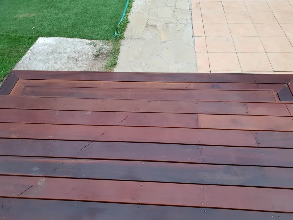 En ce qui concerne l'entretien de l'Itauba, il est relativement simple. Un nettoyage annuel avec un jet basse pression suffit généralement pour le maintenir en bon état. Au fil du temps, comme tous les bois, il commencera à griser naturellement. Si vous souhaitez lui redonner sa couleur d'origine, vous pouvez utiliser un dégriseur. De plus, l'application d'un saturateur permettra de fixer sa teinte et de profiter de son aspect original.