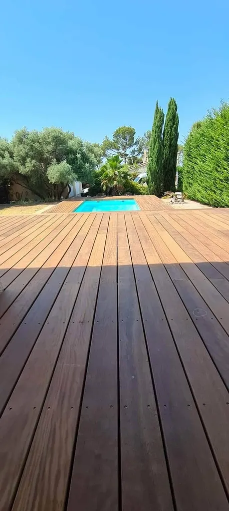 En ce qui concerne l'entretien de l'Itauba, il est relativement simple. Un nettoyage annuel avec un jet basse pression suffit généralement pour le maintenir en bon état. Au fil du temps, comme tous les bois, il commencera à griser naturellement. Si vous souhaitez lui redonner sa couleur d'origine, vous pouvez utiliser un dégriseur. De plus, l'application d'un saturateur permettra de fixer sa teinte et de profiter de son aspect original.