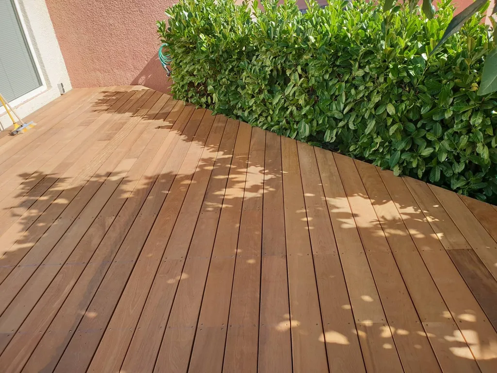 En ce qui concerne l'entretien de l'Itauba, il est relativement simple. Un nettoyage annuel avec un jet basse pression suffit généralement pour le maintenir en bon état. Au fil du temps, comme tous les bois, il commencera à griser naturellement. Si vous souhaitez lui redonner sa couleur d'origine, vous pouvez utiliser un dégriseur. De plus, l'application d'un saturateur permettra de fixer sa teinte et de profiter de son aspect original.