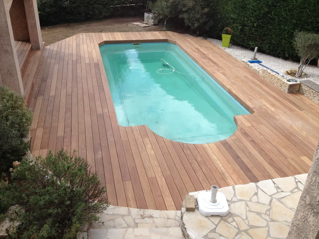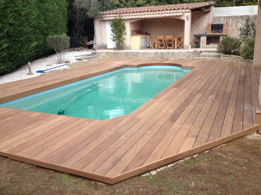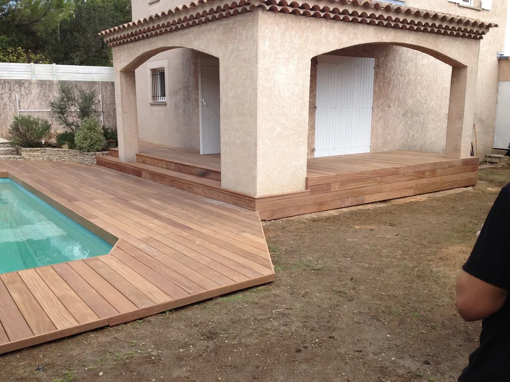 Tour de piscine avec extension terrasse en cumaru à Allauch