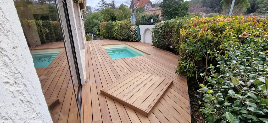 Terrasse et tour de piscine en Angelique 13 Simiane