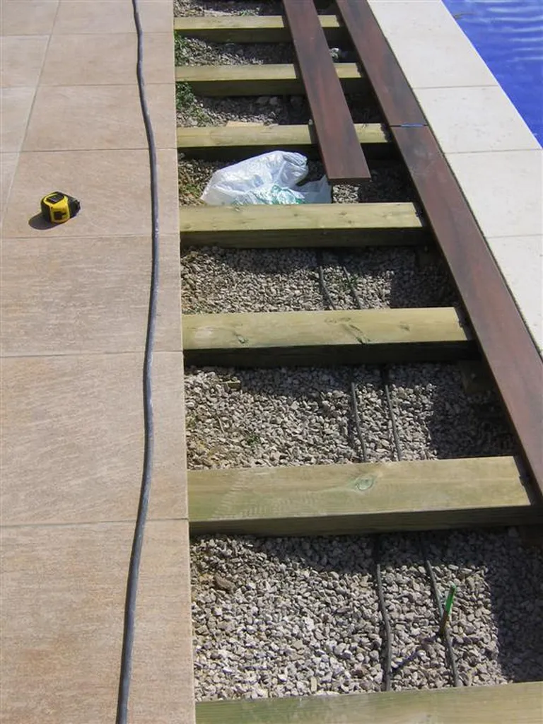 Tour de piscine en bois composite Fiberon à Lançon de Provence (13) avec une technique de pose ossature bois.