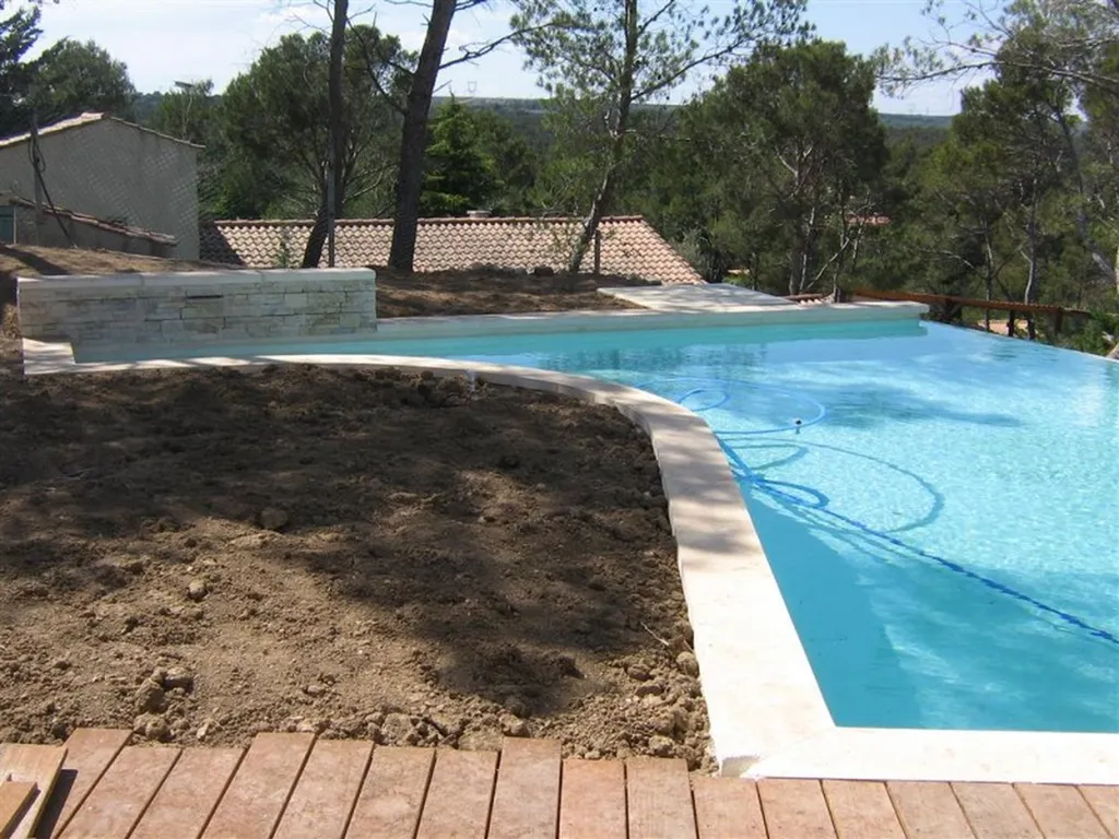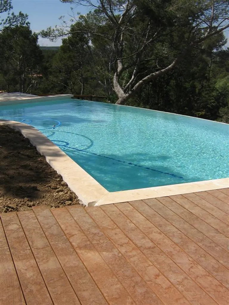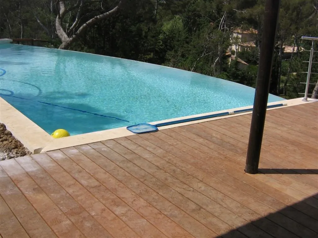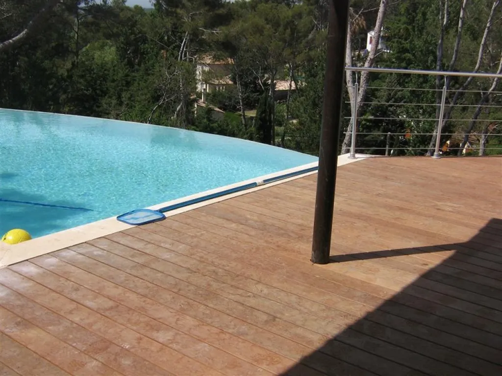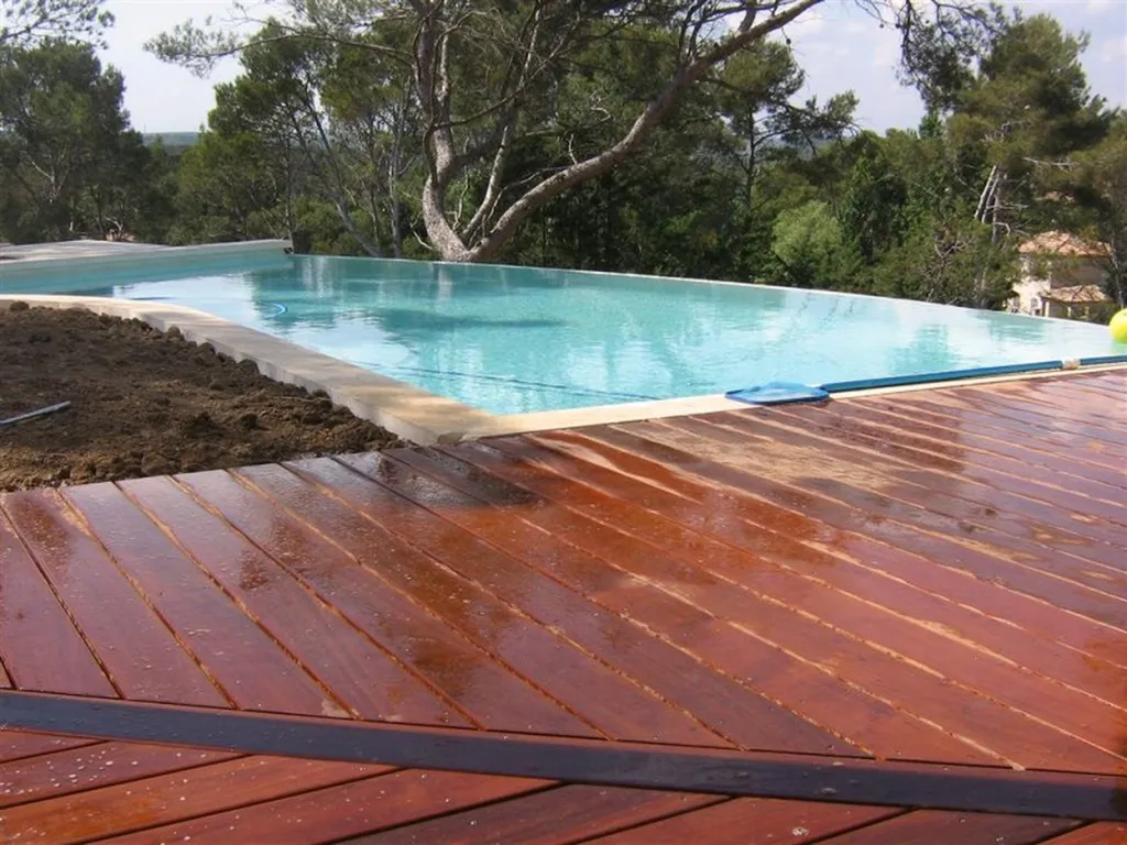 Tour de piscine en bois exotique Ipé à Calas (13) avec une technique de pose sur plots et lambourdes.