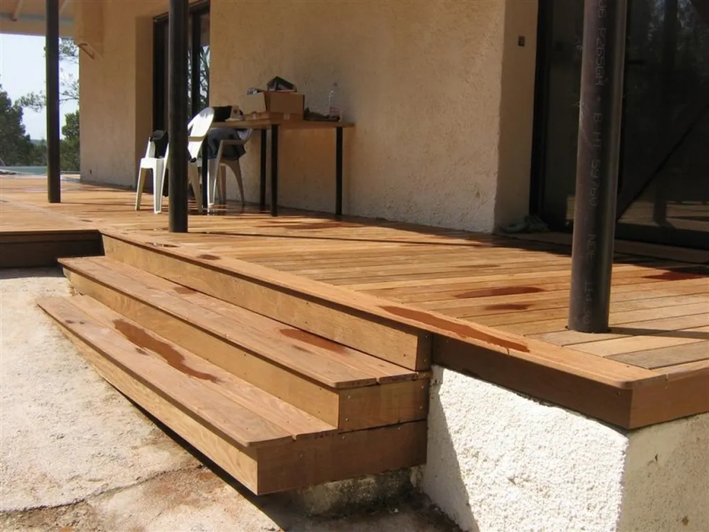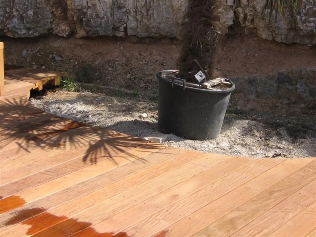 L'utilisation de lambourdes en bois exotiques pour soutenir la structure de la terrasse est également mentionnée. Les lambourdes sont des poutres ou des pièces de bois utilisées pour soutenir les lames de la terrasse et assurer une base solide. L'utilisation de bois exotiques pour les lambourdes est cohérente avec le choix d'utiliser l'IPE comme matériau principal de la terrasse, ce qui assure une harmonie esthétique et une cohérence dans les caractéristiques du bois utilisé.