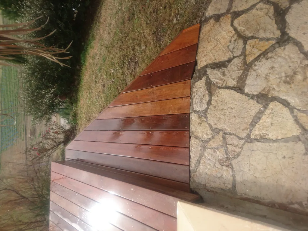 L'utilisation de lambourdes en bois exotiques pour soutenir la structure de la terrasse est également mentionnée. Les lambourdes sont des poutres ou des pièces de bois utilisées pour soutenir les lames de la terrasse et assurer une base solide. L'utilisation de bois exotiques pour les lambourdes est cohérente avec le choix d'utiliser l'IPE comme matériau principal de la terrasse, ce qui assure une harmonie esthétique et une cohérence dans les caractéristiques du bois utilisé.