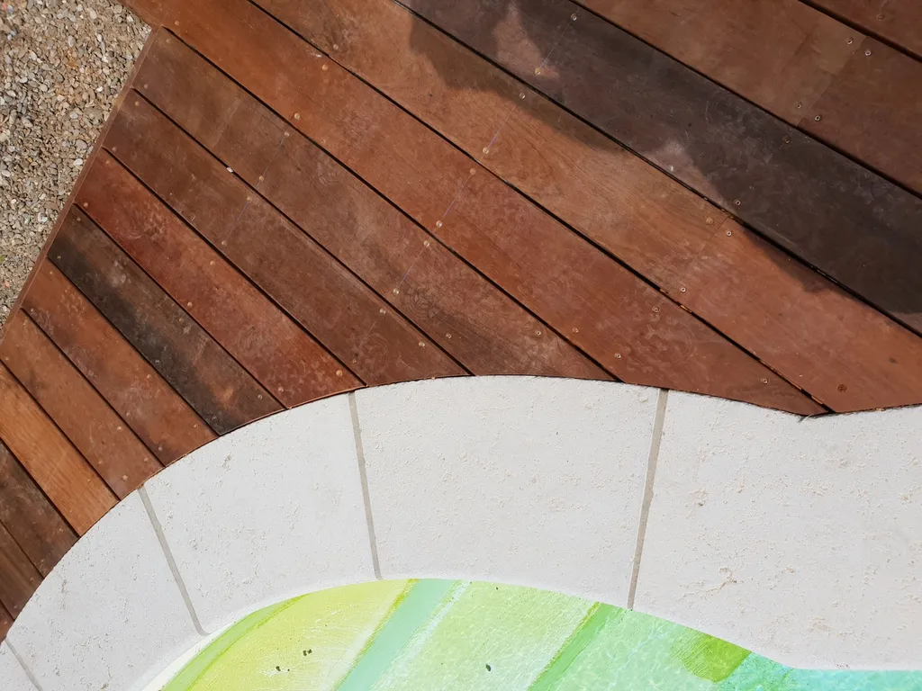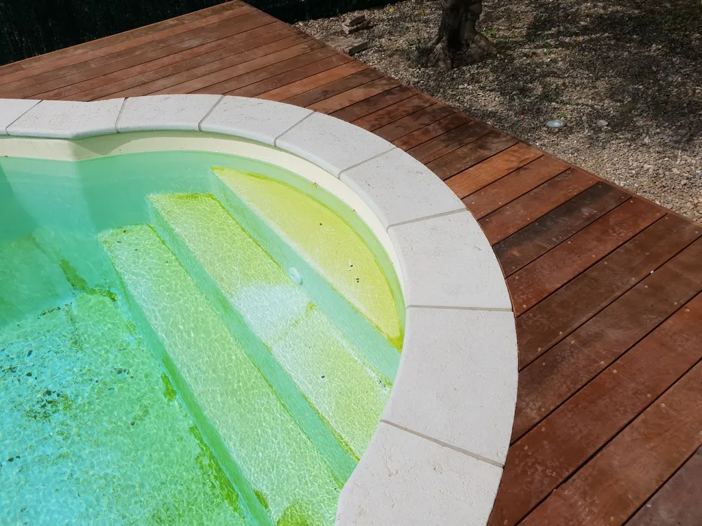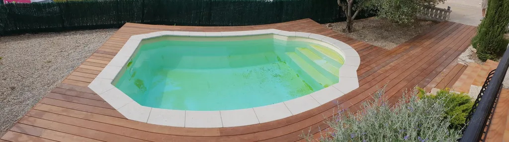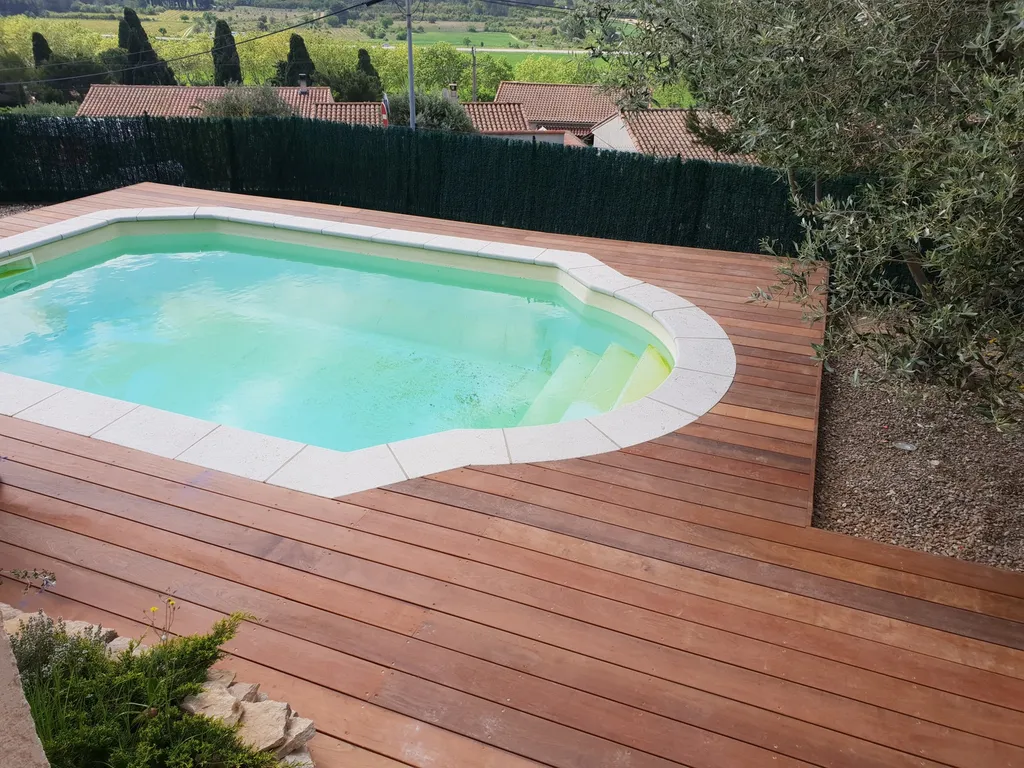Présentation d'un tour de piscine en itauba à Lançon de Provence L'Itauba est un bois exotique réputé pour sa stabilité et sa résilience. Il est connu pour s'adapter facilement à différents environnements, ce qui en fait un choix polyvalent pour les aménagements extérieurs tels que les terrasses. De plus, l'Itauba possède des propriétés répulsives aux insectes, ce qui contribue à sa durabilité.