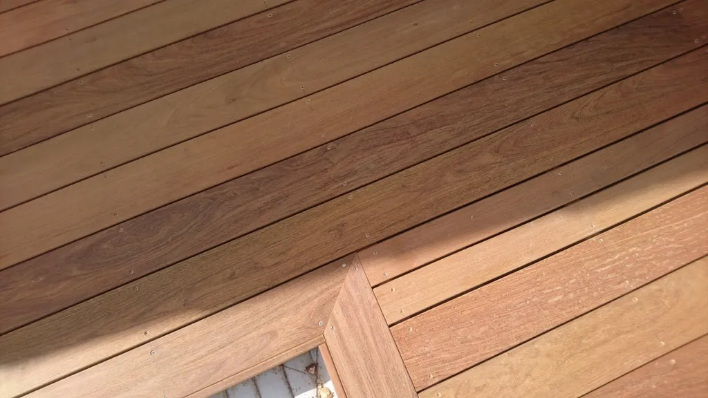En ce qui concerne l'entretien de l'Itauba, il est relativement simple. Un nettoyage annuel avec un jet basse pression suffit généralement pour le maintenir en bon état. Au fil du temps, comme tous les bois, il commencera à griser naturellement. Si vous souhaitez lui redonner sa couleur d'origine, vous pouvez utiliser un dégriseur. De plus, l'application d'un saturateur permettra de fixer sa teinte et de profiter de son aspect original.