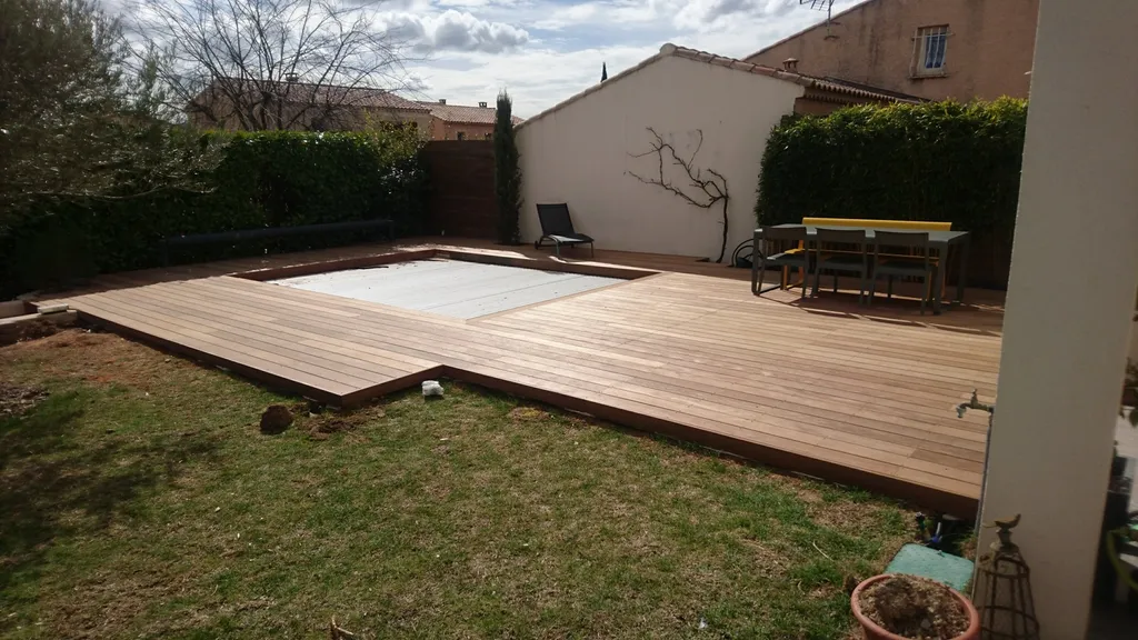 Tour de piscine en itauba Bouc Bel Air 13 et création d'un escalier