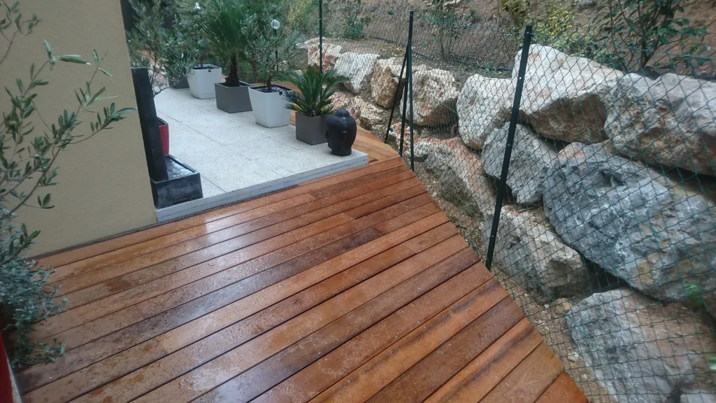En ce qui concerne l'entretien de l'Itauba, il est relativement simple. Un nettoyage annuel avec un jet basse pression suffit généralement pour le maintenir en bon état. Au fil du temps, comme tous les bois, il commencera à griser naturellement. Si vous souhaitez lui redonner sa couleur d'origine, vous pouvez utiliser un dégriseur. De plus, l'application d'un saturateur permettra de fixer sa teinte et de profiter de son aspect original.