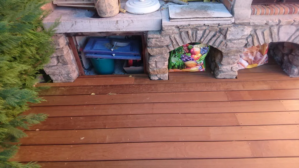 En ce qui concerne l'entretien de l'Itauba, il est relativement simple. Un nettoyage annuel avec un jet basse pression suffit généralement pour le maintenir en bon état. Au fil du temps, comme tous les bois, il commencera à griser naturellement. Si vous souhaitez lui redonner sa couleur d'origine, vous pouvez utiliser un dégriseur. De plus, l'application d'un saturateur permettra de fixer sa teinte et de profiter de son aspect original.