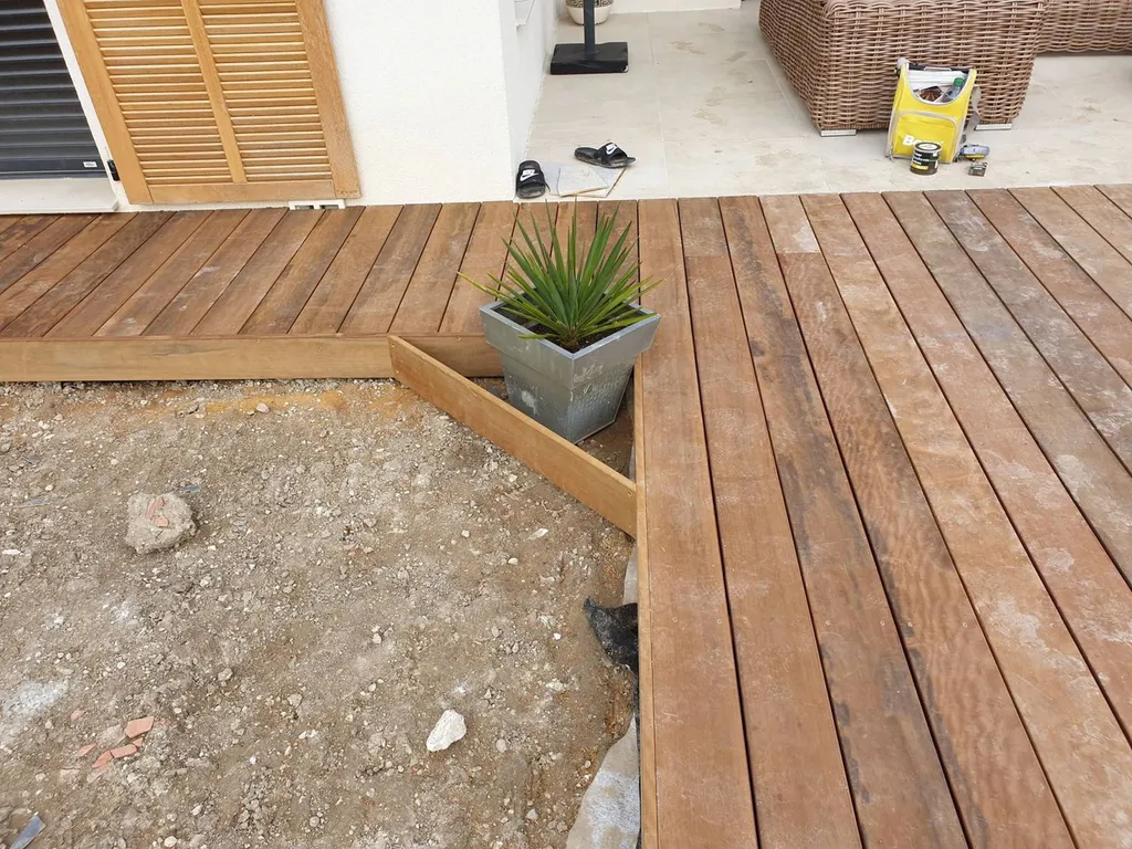 En ce qui concerne l'entretien de l'Itauba, il est relativement simple. Un nettoyage annuel avec un jet basse pression suffit généralement pour le maintenir en bon état. Au fil du temps, comme tous les bois, il commencera à griser naturellement. Si vous souhaitez lui redonner sa couleur d'origine, vous pouvez utiliser un dégriseur. De plus, l'application d'un saturateur permettra de fixer sa teinte et de profiter de son aspect original.