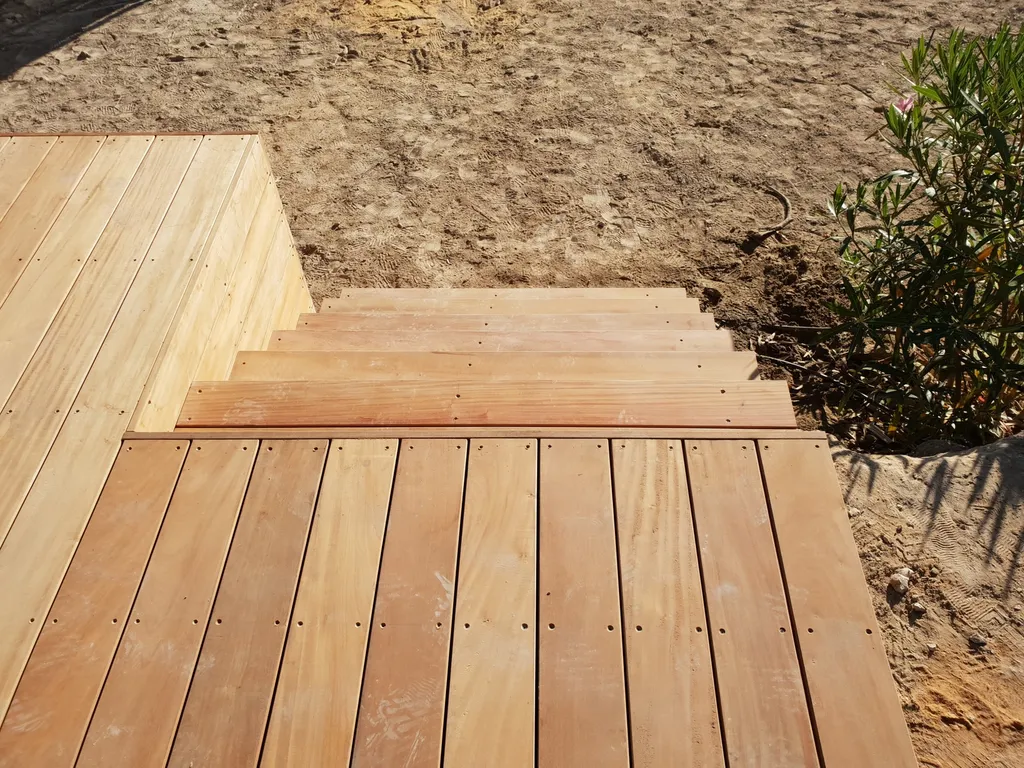 Le Garapa présente une teinte claire, ce qui lui confère un aspect lumineux et chaleureux. Il peut apporter une ambiance accueillante à votre espace extérieur. De plus, en tant que bois exotique, il possède généralement de bonnes propriétés de résistance aux éléments extérieurs tels que l'humidité, les variations de température et les insectes.
